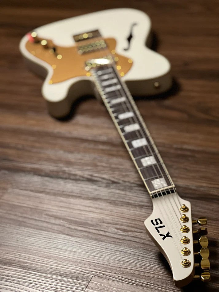 SLX Raven Thinline Super Deluxe in Olympic White with Rosewood FB and Gold Hardware